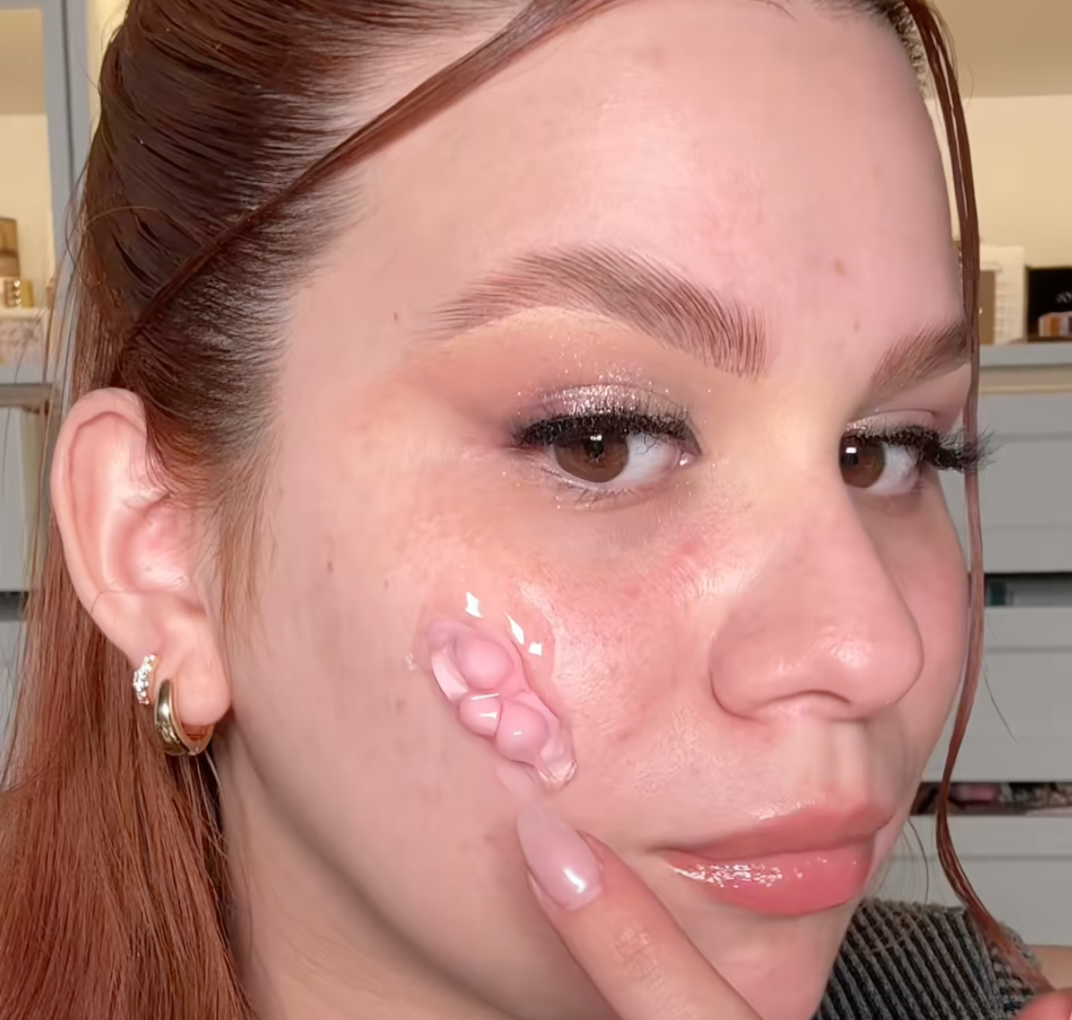 After cleansing and applying toner or serum, scoop a small amount of cream and gently massage it onto your face and neck. As you rub it in, the pink capsules will melt and absorb into the skin. Let it fully absorb before applying sunscreen or makeup.